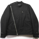 | メイン素材には高密度で耐久性の高いナイロンタフタを使用しています。ヨークには風合いをそのまま残した一枚革のカウハイド、襟にはシープムートンを使用しています。フロントのポケットは二層構造になっていて、一方にはマジックテープがついています。 | |