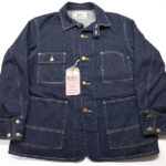 1900年前後のワークコートをイメージしたデザインで、全て本縫いで仕上げられた丁寧な縫製が特徴です。襟には小ぶりなデザインのチンストラップを備え、胸ポケットは左右非対称のパッチポケット、腰ポケットは補強布付きのスラッシュポケット仕様。さらに、左腰ポケット内部にはユニオンラベルが付属しています。 | |