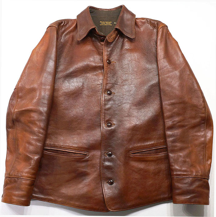 1920年代の鉄道員が使用していたワークコートをベースに製作されたオリジナルデザインのレザーコート。 前身、後身、横の継ぎ目がない豪華な仕様です。 | |