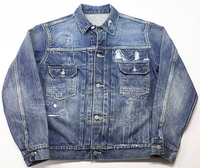 デニムジャケットが労働着からカジュアルウェアへと変化していく過渡期、1953年に誕生した“2nd”をベースに、当時の持ち主がカスタムペイントを施した。。。という設定の一着。 | |