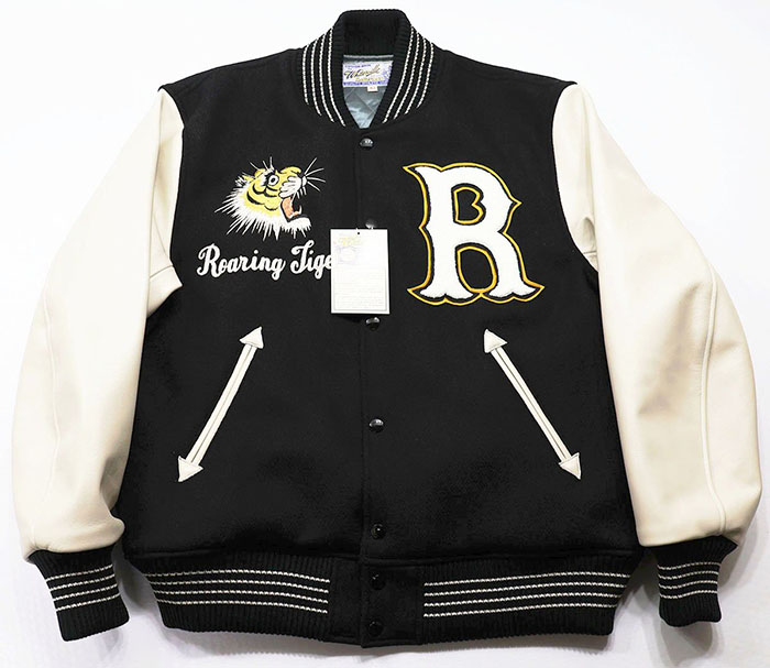 米兵に親しまれていたスタジャンをルーツに、日本で誕生したスカジャン。その発想を逆転させ、スカジャンを象徴するオリエンタルな刺繍をスタジャンへ落とし込んだ一着。スタジャン特有のチェーン刺繍に加え、日本古来の横振り刺繍で咆哮する虎を描いた、存在感ある仕上がりとなっています。 | |